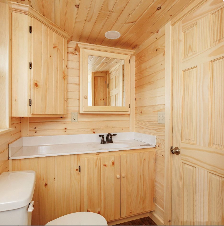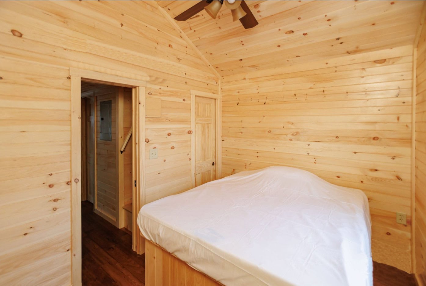 - Walls & Ceiling Finished in 7” T&G Knotty Pine Barn Siding (Clear Finished)