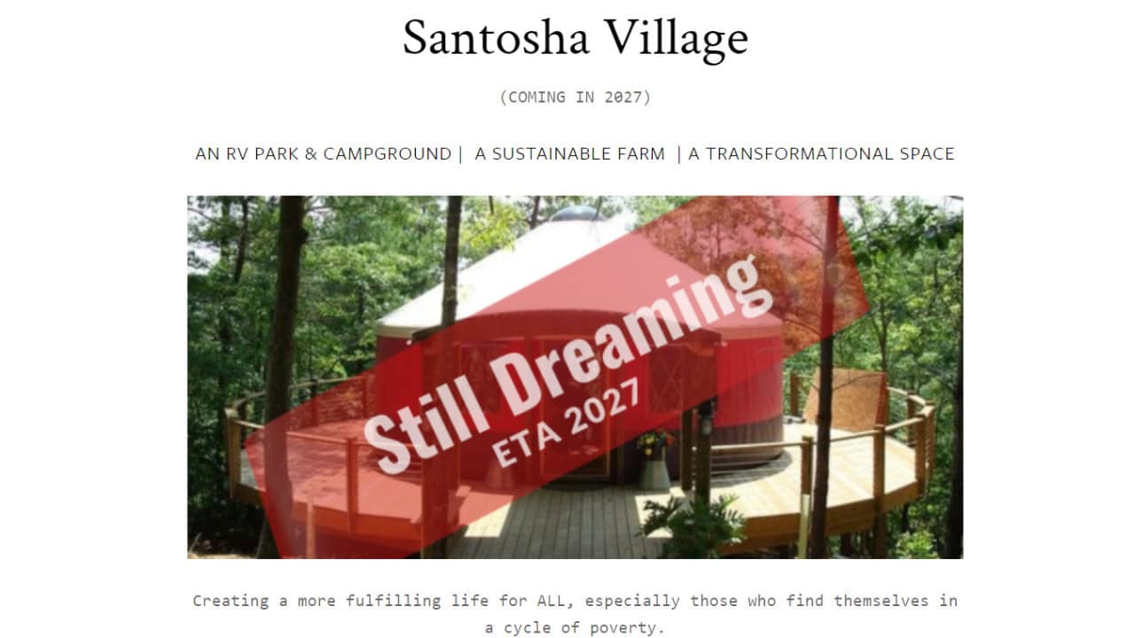 Santosha Village envisions serving as an exceptional, eco-focused community with an RV park, tiny houses, and yurts, housing approximately 40 residents. The goal is for community members to contribute with affordable, all-encompassing rent and lend a hand in preserving the village. In exchange, they will become part of a supportive, environmentally friendly community they can call home.